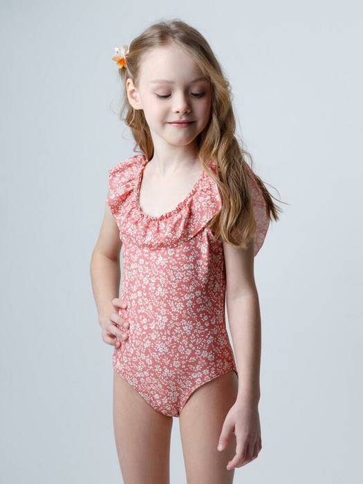 Слитный купальник на лямках для девочки. Украшен оборками. Внутри подклад. Оригинальная набивка выполнена из стойких гипоаллергенных красителей.