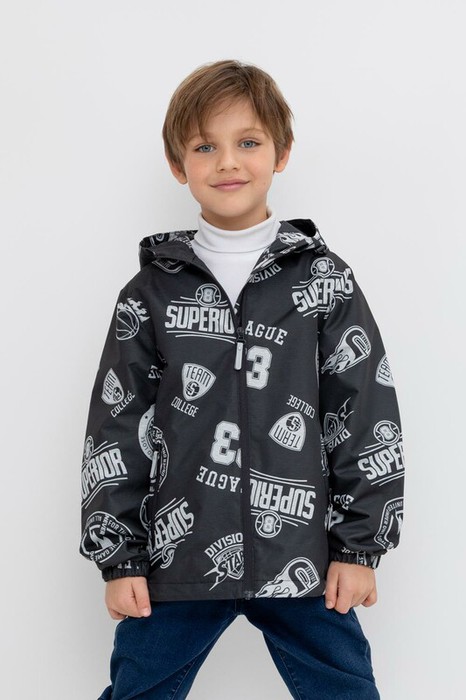 Ветровка для мальчика из мембранной ткани с дополнительной тефлоновой обработкой. Данный вид обработки предохраняет изделие от загрязнения и лучше отводит влагу. Подклад из 100% полиэстера. У изделия предусмотрена защита подбородка. Несъемный капюшон регулируется с помощью эластичного шнура со стопперами. Низ рукавов имеет эластичную резинку для лучшего прилегания. Боковые карманы на молнии. Во всех изделиях верхнего ассортимента для безопасности ребенка предусмотрены светоотражающие элементы.