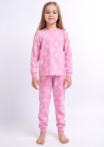Трикотажная пижама в рубчик из натурального хлопка. Джемпер с длинными втачными рукавами и лосины с эластичной резинкой в поясе. Оригинальная набивка выполнена из стойких текстильных гипоаллергенных красителей. Изделие сохраняет цвет и форму после многократных стирок. Все трикотажные полотна производятся в соответствии с нормами швейцарского сертификата ЭкоТекс.