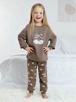 Трикотажная пижама в рубчик из натурального хлопка. Джемпер с длинными втачными рукавами и лосины с эластичной резинкой в поясе. Оригинальная набивка выполнена из стойких текстильных гипоаллергенных красителей. Изделие сохраняет цвет и форму после многократных стирок. Все трикотажные полотна производятся в соответствии с нормами швейцарского сертификата ЭкоТекс.