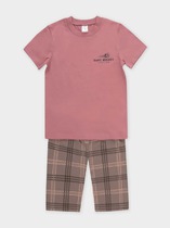 Трикотажная пижама из натурального хлопка для комфортного сна и отдыха. Футболка с короткими спущенными рукавами и шорты с мягкой эластичной резинкой в поясе. Оригинальная набивка и принт выполнены из стойких текстильных гипоаллергенных красителей. Изделие сохраняет цвет и форму после многократных стирок. Все трикотажные полотна производятся в соответствии с нормами швейцарского сертификата ЭкоТекс.