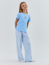 Пижама из трикотажа в рубчик для комфортного сна и отдыха. Эластичная футболка с короткими рукавами и широкие брюки с мягкой резинкой в поясе. Комплект изготовлен из 100% натурального хлопка. Материал приятен к телу, не теряет форму и позволяет коже дышать. Оригинальный рисунок выполнен из стойких текстильных гипоаллергенных красителей. Все трикотажные полотна производятся в соответствии с нормами швейцарского сертификата ЭкоТекс.