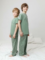Трикотажный пижамный комплект из натурального хлопка. В комплекте рубашка с короткими рукавами и  застежкой на пуговицы. Прямые  брюки с удобным поясом на резинке. Оригинальная набивка выполнена из стойких, гипоаллергенных текстильных красителей. Все трикотажные полотна производятся в соответствии с нормами Швейцарского сертификата ЭкоТекс.
