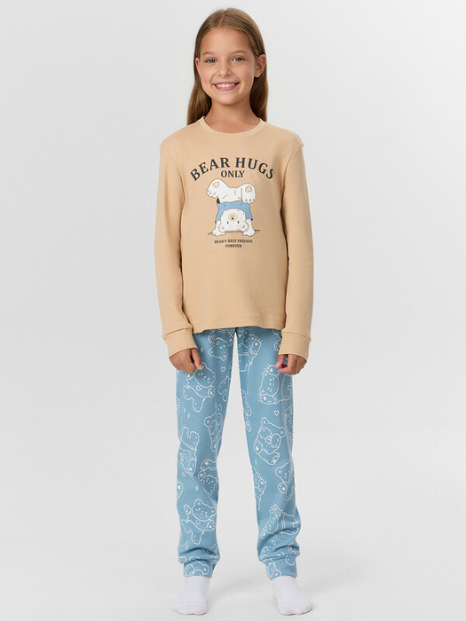 Очаровательный домашний комплект для девочки создан для комфортного отдыха и крепкого сна. В набор входит джемпер свободного кроя с длинными рукавами и удобные брюки прямого силуэта - идеальная пижама для девочки для прохладных вечеров.