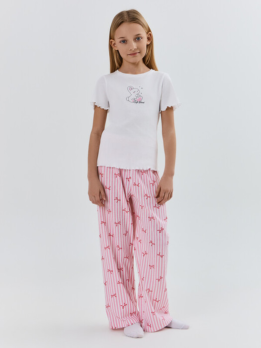 Комплект для девочек состоит из джемпера и брюк.