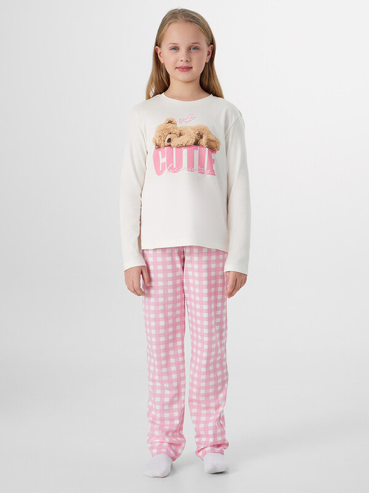 Комплект для девочек состоит из лонгслива и брюк.