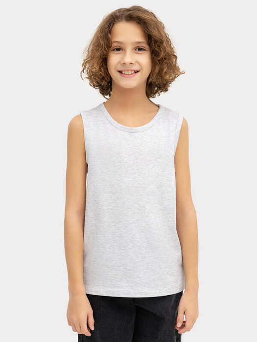 Майка полуприлегающего силуэта из хлопковой трикотажной кулирки. Длина до середины бедер.  Горловина круглая, окантована мягкой бейкой. Нижний срез обработан плоским швом. Комфортная классика для вашего мальчика!