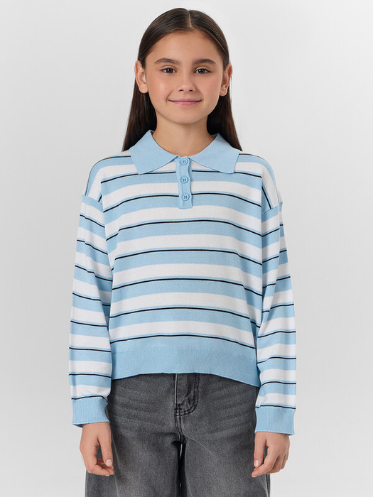 Совместные покупки Пермь Детская одежда Джемперы, свитеры — 12.04 Mark Formelle ПОЛО ДЛЯ ДЕВОЧЕК 127975 127975 бело -голубая полоска