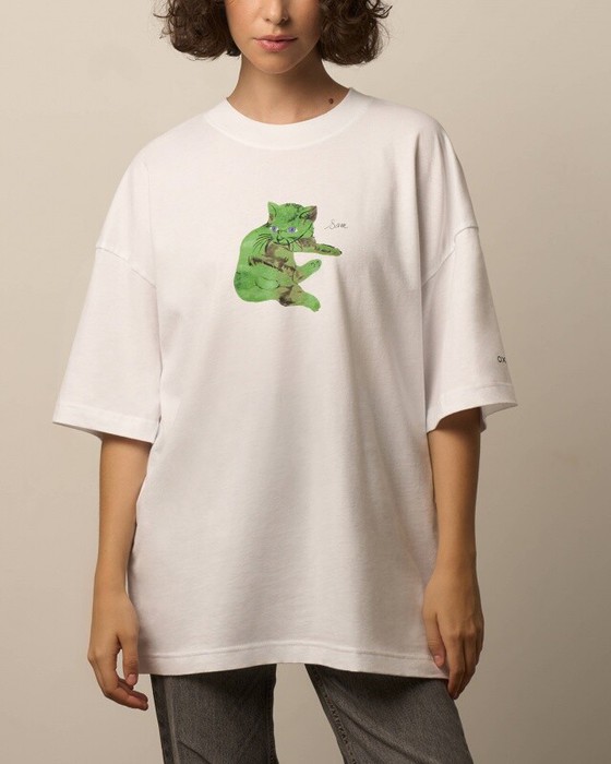 Футболка свободного силуэта. Спущенное плечо. Горловина из двух деталей, из рибаны.
