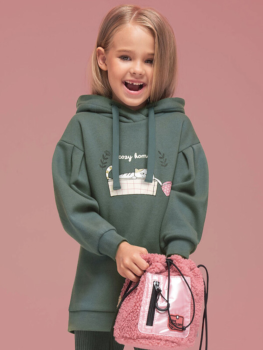 Худи детское удлиненное для девочки. Туника актуального оверсайз-силуэта со спущенным плечом подарит ребёнку комфорт и свободу движения. На рукавах красивые глубокие складки. Объёмные рукава — один из модных трендов сезона. По низу изделия и низу рукавов манжеты из эластичной рибаны (ткань в рубчик), они не растягиваются и сохраняют форму и отличный внешний вид надолго. Капюшон с двумя швами, что обеспечивает анатомически правильную форму и комфортную посадку по голове. Объём капюшона регулируется тесьмой, продетой в крупные люверсы. Капюшон двойной - швы не видно. Худи оверсайз с принтом на груди. Принт эластичный и прочный, без проблем переносит частые стирки. Милый принт изображает котика в корзине с чашкой, надпись переводится: «уютный дом». Худи для девочек неприхотливо в уходе. В составе ткани преобладает высококачественный хлопок — толстовка мягкая и прекрасно пропускает воздух, давая коже ребёнка дышать. Благодаря полиэстеру изделие легко стирается и быстро сохнет, сохраняет первозданную форму надолго. Туника представлена в двух трендовых цветах: красный и зелёный (оттенок хаки). Размерная линейка: 2 (92); 3 (98); 4 (104); 5 (110); 6 (116); 7 (122); 8 (128); 9 (134); 10 (140); 11 (146). Худи утеплённое подходит для девочек дошкольного и младшего школьного возраста, а также девочек-подростков. Идеально для детского сада, прогулок, активного отдыха, дома. Худи с капюшоном можно носить круглый год: прохладным летом, осенью и весной (демисезон), зимой. Стильный и практичный подарок дочери, внучке или сестре на День рождения и любой другой праздник.
