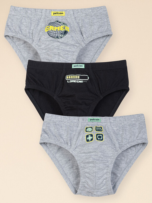22.04 Pelican Трусы для мальчиков BULB3338(3) Серый/черный/серый