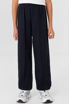 Брюки изготовлены из трикотажного полотна футер. Брюки свободного силуэта. Сиденье немного спущено. В боковых швах обработаны карманы. Подкладка карманов из кулирки. Пояс отрезной с эластичной тесьмой внутри. В передней части с лицевой стороны пробиты петли и втянут шнур. Низ брюк обработан в подгибку с эластичной тесьмой внутри.
