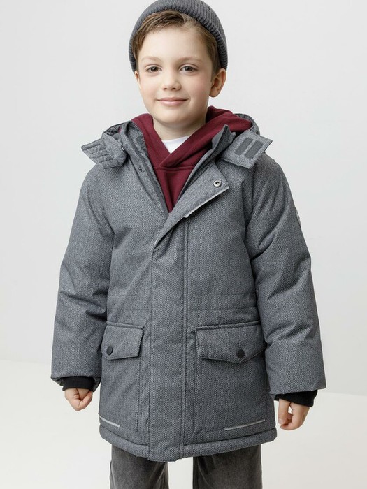 Зимняя куртка для мальчика с утеплителем SEE®: 300 г/м2. Выполнена из мембранной ткани с дополнительной тефлоновой обработкой, которая предохраняет изделие от загрязнений и отталкивает влагу. Подклад выполнен из 100% полиэстера Tricot. Куртка застёгивается на молнию и внешнюю планку с магнитными кнопками, предусмотрена защита подбородка. Съёмный капюшон на кнопках и липучках имеет эластичную утяжку со стопперами. На рукавах внутренние эластичные манжеты. Два накладных кармана с клапанами по бокам. По талии эластичная утяжка со стопперами. Во всех изделиях верхнего ассортимента для безопасности ребёнка предусмотрены светоотражающие элементы.