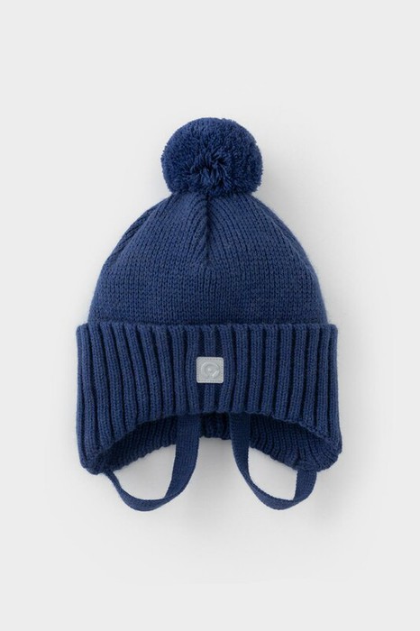 Тёплая зимняя шапка с подкладом из хлопкового трикотажа. Верх выполнен из полушерстяной пряжи. На макушке помпон. Светоотражающая нашивка спереди обеспечивает безопасность в темное время суток.