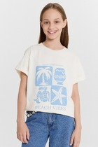 Модная футболка для девочек, выполненная из хлопковой трикотажной кулирки. Силуэт прямой. Перед и спинка без швов и рельефов. Рукава короткие, вырез классический – круглый, не глубокий. Стильная футболка с ярким дизайном!