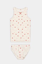 Нежное и красивое нижнее белье детское для девочек. Комплект для девочки выполнен из высококачественного хлопка. Майка свободного силуэта, на бретелях, с небольшим углублением на горловине. Трусики имеют слегка заниженную линию талии, по срезам идет эластичная тесьма. Модель имеет нежные и деликатные швы, ничто не будет давить и стеснять движения вашего ребенка. Комплект состоящий из трусов и майки — отличный выбор нижнего белья на каждый день. Натуральный хлопок отлично пропускает воздух, хорошо впитывает влагу и быстро сохнет. Подойдет для самой нежной кожи за счет гипоаллергенного состава материала. Нательное белье детское хорошо тянется, не линяет и не деформируется при многочисленных стирках. Линейка широкая, есть комплекты в спокойных базовых расцветках, а также интересные варианты с принтами. Трусики и маечка для девочек подойдут для повседневной носки в садик и школу, можно использовать и как пижаму для сна. Удобно, красиво и комфортно. Лучший вариант нательного детского белья от Mark Formelle!