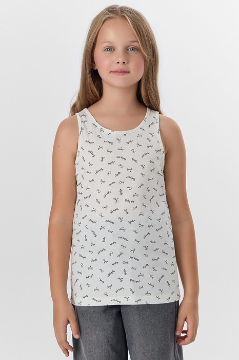 Майка для девочек, выполненная из трикотажной кулирки. Длина до середины бедер. Силуэт полуприлегающий. Горловина круглая. Универсальная майка!