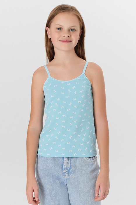 Майка прилегающего силуэта для девочек. Выполнена из трикотажной рибаны с фактурой в рубчик, что обеспечивает приятные ощущения и удобство при носке. Модель на тонких бретелях с неглубоким V-образным вырезом добавляет элегантности и изящности. Рекомендуем эту майку как дополнение к базовому детскому гардеробу.