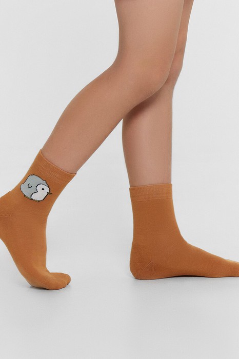рис.2462 Детский классический носок с плюшевым следом и рисунком в виде пингвинчика.