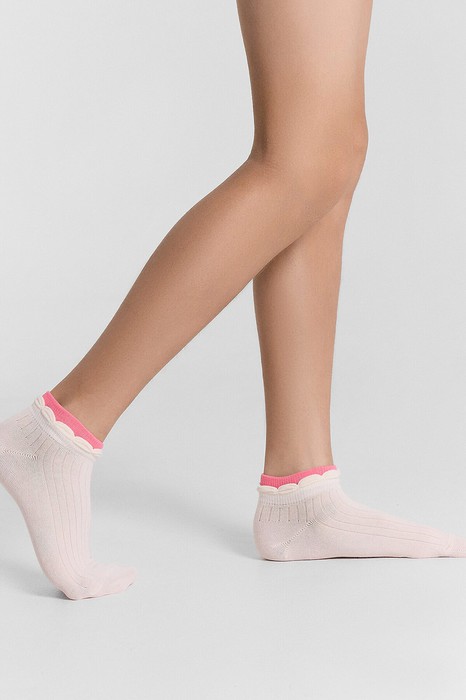 рис.3177 Носки детские укороченные с цветным бортиком и рисунком в виде лапшы выполненным перекидным переплетением.