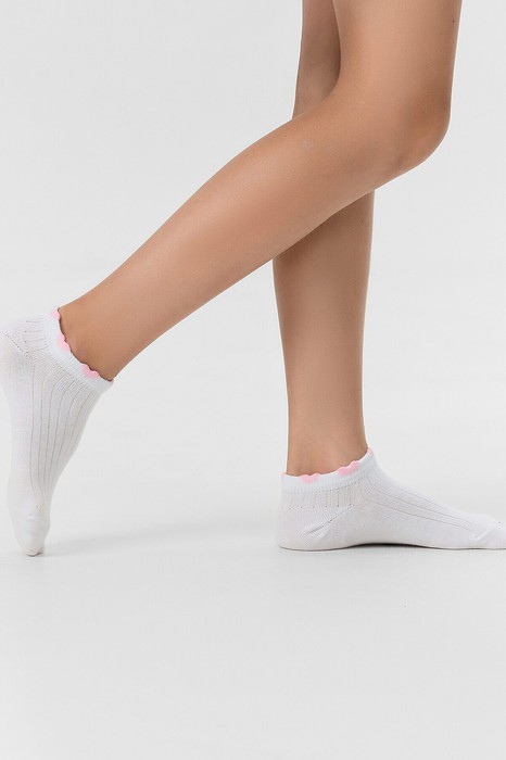 рис.3191 Детские укороченные носки выполненный перекидным переплетением (лапша), с пикотом в виде сердечек на бортике.