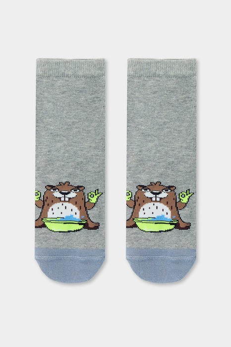 рис.1350 Детский носок гладкий с рисунком в виде сурка суббота.
