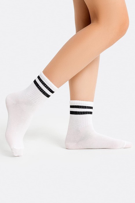 рис.2458 Детский носок гладкий с высокой резинкой и рисунком в виде поперечных полосок