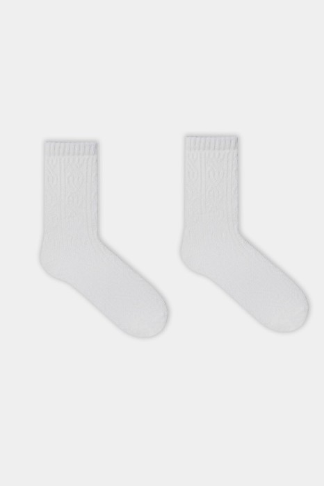 рис.1799 Детский носок из шерсти с ангорой с ажурным рисунком.