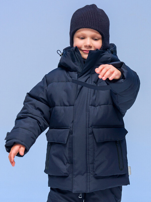 Пуховик зимний для мальчика. На внешнюю поверхность материала нанесена водоотталкивающая пропитка (DWR), она задерживает грязь и влагу снаружи — ребёнок не промокнет. Также есть дополнительная пропитка на внутренней стороне ткани. Куртка прямого оверсайз-силуэта подходит для любого типа фигуры. Капюшон двухшовный, что обеспечивает анатомически правильную форму и комфортную посадку по голове. Капюшон не отстегивается, предусмотрена регулировка объема эластичными шнурами с пластиковыми стопперами. Внутренние манжеты рукавов из эластичной рибаны (ткань в рубчик) — дополнительная защита от ветра и холода. Рибана хорошо тянется и при этом не теряет форму в течение долгого времени. Дополнительно объем рукава по низу регулируется патой на липе — просто и удобно. Центральная застёжка на тракторную молнию с двумя пуллерами — удобно садиться. Тканевый стоппер защищает подбородок от зажима молнией. Фиксирующая строчка предохраняет планку от «заедания» в процессе застёгивания. Зимний пуховик тёплый — дополнительно, для защиты от ветра и холода, центральная молния закрыта ветрозащитной планкой на липучках (велькро). Высокотехнологичные липучки нового образца не цепляются к одежде и не нуждаются в постоянной чистке от ворсинок. По низу объём и силуэт изделия регулируется эластичным шнуром со стопперами. Пуховик на мальчика спереди дополнен объёмными накладными карманами с магнитными застёжками — ребёнку просто и быстро открывать и закрывать даже в варежках. Карманы внутри утеплены мягким флисом. На накладных карманах сделаны прорезные карманы со скрытыми молниями, которые обрамлены водоотталкивающей рамкой — содержимое карманов не намокнет. В каждой куртке нейм-лейбл! Ребёнок не потеряется и не потеряет куртку! На спинке и в боковых швах расположены светоотражающие элементы — безопасность в тёмное время суток. За изделием легко ухаживать. Пуховик без принта. Выполнен из полиэстера — он тёплый, не промокает, легко стирается, быстро сохнет, сохраняет отличную форму и цвет надолго. Подкладка из мягкого, тёплого и дышащего флиса (по стану, внутреннему воротнику и в капюшоне). В рукавах подкладка из полиэстера — благодаря этому ребенку легко надевать куртку, руки не путаются в рукавах. Куртка выполнена из ткани темно-синего универсального цвета. Она легко сочетается с различными брюками. Размерная линейка: 3 (98); 4 (104); 5 (110); 6 (116); 7 (122); 8 (128); 9 (134); 10 (140); 11 (146). Куртка зимняя оверсайз подходит для маленьких мальчиков дошкольного и младшего школьного возраста, а также подростков. Рекомендуемый температурный режим: не ниже минус 30 градусов. Утеплитель: экопух. В рукавах дополнительный слой тонкого синтепона. Модель идеальна для носки в детский сад, школу, для прогулок и отдыха. Куртка на мальчика — замечательный подарок для сына или внука на любой праздник.