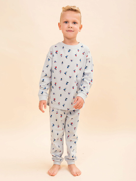 Детская пижама – домашний удобный комплект бренда Pelican, состоящий из лонгслива и брюк. Комфортный очень важен для роста и восстановления организма ребенка, поэтому пижама малышу должна обеспечивать максимальный комфорт и защиту. Пижама для мальчика бренда Pelican создана из натурального хлопка, сохраняет тепло, гигроскопична, впитывает влагу. Материал позволяет коже ребенка дышать, мягкая резинка брюк не стягивает, не натирает. Изделие после стирки не садится, не растягивается, не линяет. Джемпер с круглым вырезом горловины, спущенным рукавом. Брюки прямые, на резинке, с манжетами по низу брюк. Ровные мягкие швы, отделка по горловине и манжеты на рукавах и низу брюк придают пижаме для детей милый образ и модное исполнение. Широкая размерная сетка позволяет подобрать оптимальный размер как для малыша, так и подростка.  Пижама для мальчика комфортная, она обязательно понравится ребенку и подарит хорошее настроение. Модель из зимней коллекции сочетается с носками с рисунком. Цвет комплекта детской пижамы для мальчика – серый с рисунком по мотивам лыжного спорта и зимних забав. Преподнести подарок ребенку на любой праздник – Новый год, Рождество, день рождения или без повода – приятно и легко. Оригинально можно составить образы с пижамой для мальчика со штанами для детской, семейной фотосессии, если подобрать модели из коллекции Пеликан и порадовать тем самым себя и своих близких.
