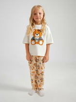 Уютный комплект для девочек, состоящий из джемпера с длинными рукавами и брюк. Джемпер свободного силуэта. Перед и спинка цельнокроеные. Горловина круглой формы из основного полотна. Рукава втачные, низ рукавов с притачными манжетами. Брюки прямые, с притачными манжетами. Пояс с эластичной тесьмой, которая обеспечивает отличную посадку. Стильная и комфортная детская пижама — лучший вариант для прохладного времени года. Широкий размерный ряд, красивые расцветки моделей в линейке. Рекомендуем!