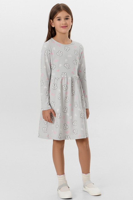 Нарядное платье для девочек, выполненное из хлопковой трикотажной кулирки. Модель платья с отрезной юбкой, в сборочку. Вырез классический – округлый, не глубокий, с окантовкой из кулирки. Рукав длинные, свободные. Рекомендуем для праздников и утренников!