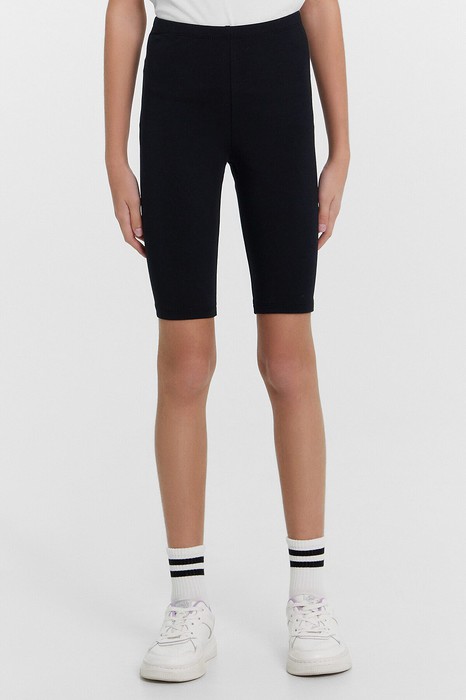 Шорты-велосипедки из трикотажного полотна кулирного переплетения. Длина шортов – до колена, силуэт – облегающий. Пояс с эластичной тесьмой. Нижние срезы подогнуты. Стильный и очень комфортный вариант!