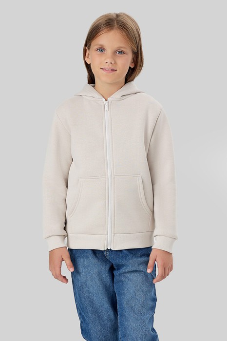 Жакет из трикотажного футера с теплым подчесом. Спущенная линия плеча гарантирует свободу движений. Прямой свободный силуэт, уютный капюшон, длинные рукава на манжетах, удобный карман-кенгуру, центральная застежка на молнию – эта модель наверняка понравится вашей девочке.