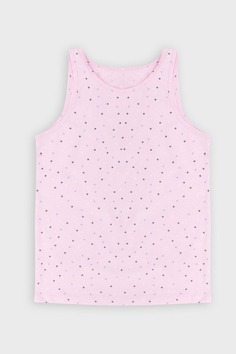 Майка для девочек, выполненная из трикотажной кулирки. Длина до середины бедер. Силуэт полуприлегающий. Горловина круглая. Универсальная майка!