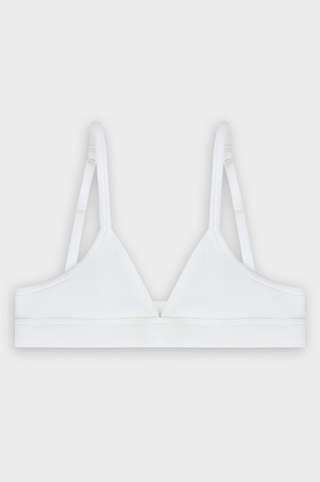 Топ прилегающего силуэта, без каркаса. Чашки без выточек с подкладкой из кулирного полотна SJ-6 (SJ-009.01.170), 95% хлопок; 5% эластан, 180 см, 170 гр/м?. По верхнему краю чашки с изнаночной стороны в подгибке эластичная тесьмавнутри (жилка тканая WT4-6) ширина -6 мм. Верхний срез спинки и проймы окантован бейками из основного полотная с эластичной тесьмой внутри (жилка тканая WT4-10) ширина 10 мм. Бретели SWE3-10, ширина 10 мм. На бретелях: кольца и регуляторы. Низ топа окантован бейкой из основным полотном с эластичной тесьмой внутри (внутренняя резина 25RV) ширина -25мм.