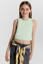 Элегантное бюстье для девочек, изготовленное из эластичного трикотажного полотна и кружева. Чашки на подкладке, стан кружевной. Бретели регулируются сзади и крепятся к детали спинки при помощи колец. Очень комфортная и романтичная модель!