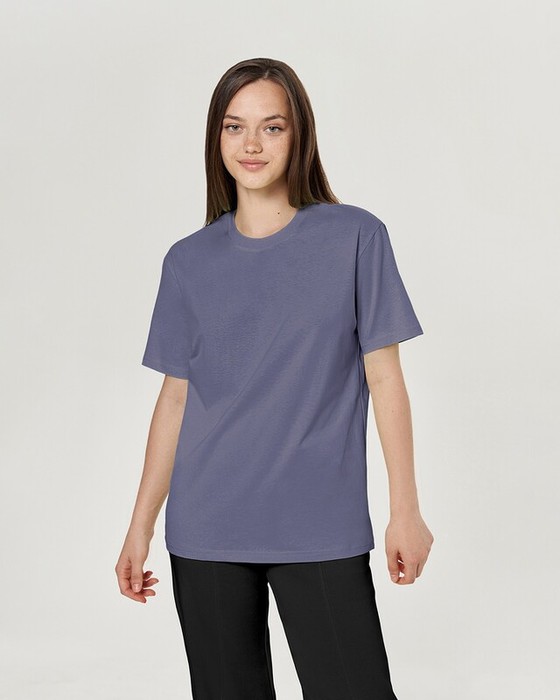 Boyfriend крой, укрепление по горловине спинки, круглый вырез. Горловина рибана. Отстрочка по горловине переда
