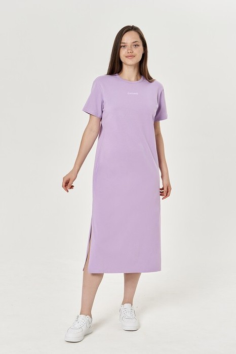 Платье прямого силуэта . Длина миди. Втачной рукав. В боковых швах разрезы. горловина окантована.