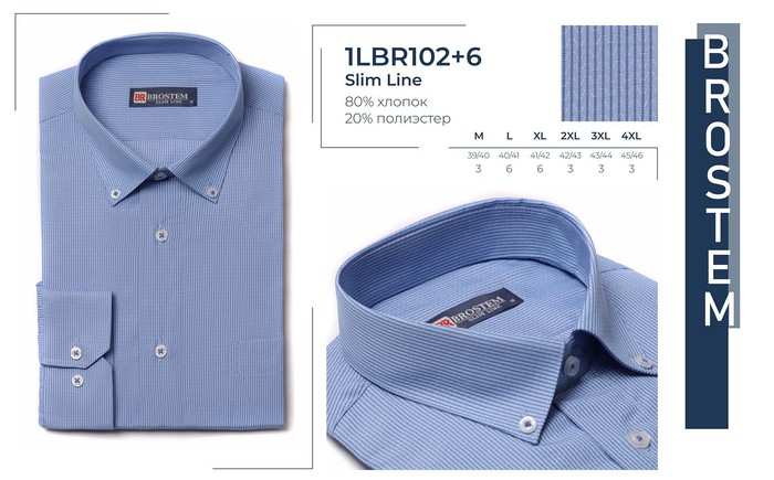 Совместные покупки Пермь Мужская одежда Рубашки — 1LBR102+6* Сорочка мужск.полу.притал. дл. рукав, BROSTEM, шт