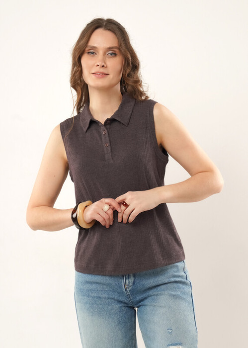 Блузка из трикотажного полотна. По горловине отложной воротник с планкой и пуговицами ,по пройме -обтачка.