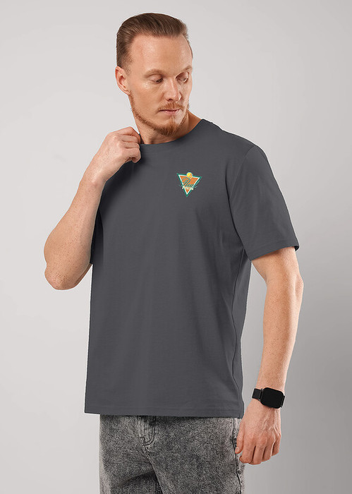 Футболка мужская из хлопкового полотна. Модель с круглым вырезом горловины и коротким втачным рукавом. Благодаря дизайнерскому принту на груди и спинке образ выглядит завершенным.