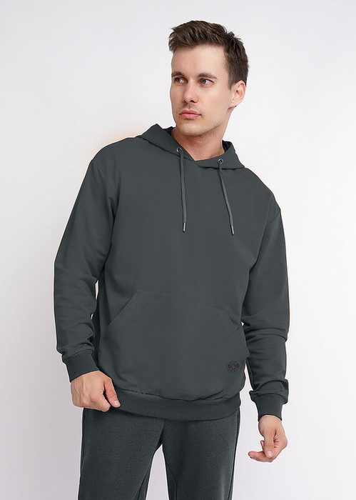 Толстовка на капюшоне из футера со шнуром и наконечниками. Благодаря карману-кенгуру спереди и рукаву покроя ""релан"" изделие удобное в носке и не придает дискомфорта. Рукав с эластичным манжетом. Так же изделие дополняет силиконовая нашивка.