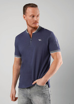 Футболка-поло с вязаными отделками из фактурного полотна ""пике"". Модель с коротким рукавом на манжете и функциональной планкой на 3 пуговицы. Модель можно дополнить брюками или джинсами. Отличный вариант для встреч с друзьями.