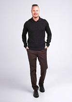 Джемпер полнообъемный с коротким рукавом. Воротник отложной вязаный, планка на петли и пуговицы. Низ рукава на вязаной манжете