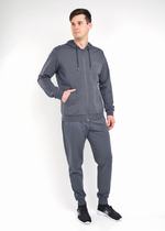 Модная куртка с капюшоном на молнии из плотного трикотажного полотна будет незаменимой вещью в гардеробе любого мужчины благодаря функциональным карманам "кенгуру" и стильной отделке изделия.
