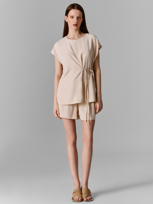 Шорты женские свободного силуэта из ткани. На детали переда карманы с отрезным бочком.