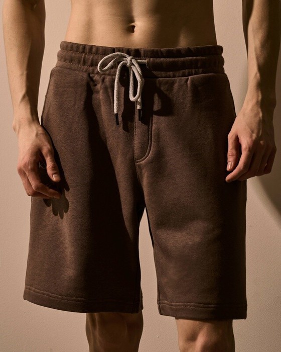 Мужские шорты с кокеткой.Пояс из двух частей, задняя часть из кашкорсе, отстрочен, внутри с резинкой и шнурком. Боковые карманы на передних деталях,1 накладной карман на правой задней детали шорт