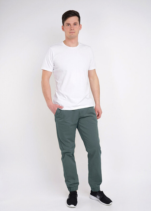 Мужские хлопковые джоггеры средней посадки на резинке по низу. Удобство обеспечивается за счет карманов, а регулировка талии благодаря шнуру с наконечниками. Такие брюки можно сочетать в спортивном или повседневном образе с любыми футболками.