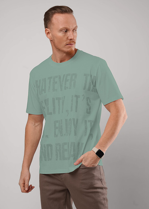Футболка мужская, увеличенного объема, из хлопкового полотна, круглым вырезом горловины и коротким втачным рукавом. Стильный принт придает модели оригинальность. Отличный вариант для прогулки или встречи с друзьями.